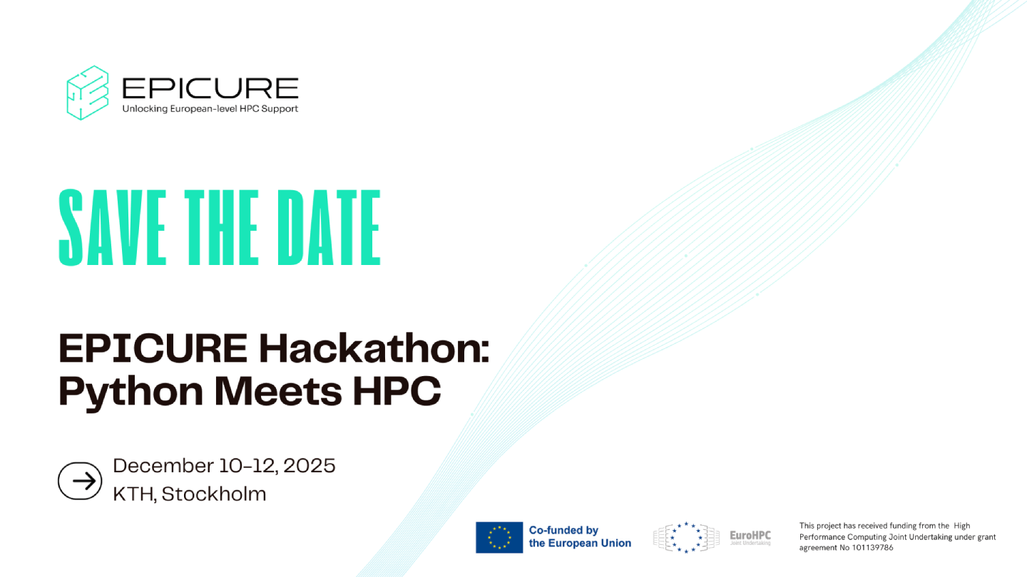 The EPICURE project organizes December 10-12, 2025, in Stockholm, the new edition of Hackathon “Python Meets HPC”, a collaborative event that brings together researchers, programmers, and HPC specialists to solve real-world challenges, optimize code, and share best practices for performance and scalability.